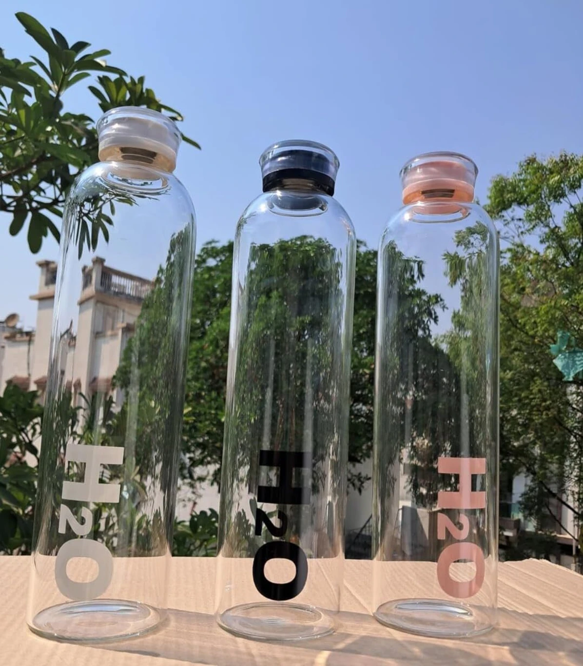 Transparent H2O Printed Water Bottle With Leakproof Lid 700 ml Glass Bottle (Pack of 1, Multicolor) | Shyambaba