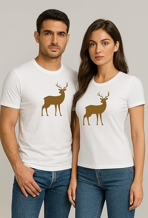 Unisex Nature Inspired Printed T-Shirt | Deer Graphic Photo Print | Poly Cotton Round Neck Casual Wear | ISHADHARI