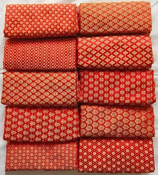 - Premium Fabric Set: Pack of 10 unstitched blouse fabric pieces featuring traditional Indian designs in vibrant red colour with elegant gold patterns