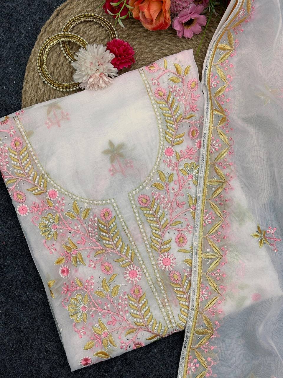 Unstitched Tabby Organza Silk Suit Set with Sequins Work – 5000 Series | BRAD LEEZO