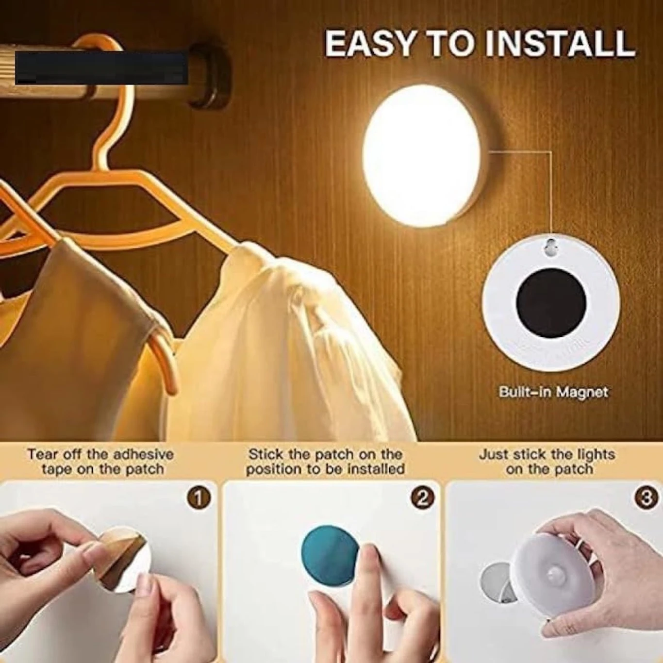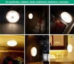 Smart Motion Sensor: Automatically turns on when motion is detected in low light., USB Rechargeable: Built-in rechargeable battery with convenient USB charging., Energy Efficient LED: Provides bright yet soft light while saving energy., Wireless & Portable: No wiring required, easy to place anywhere in your home., Easy Installation: Can be mounted on walls or used on flat surfaces., Multipurpose Use: Ideal for bedrooms, hallways, closets, staircases, kitchens, and bathrooms.