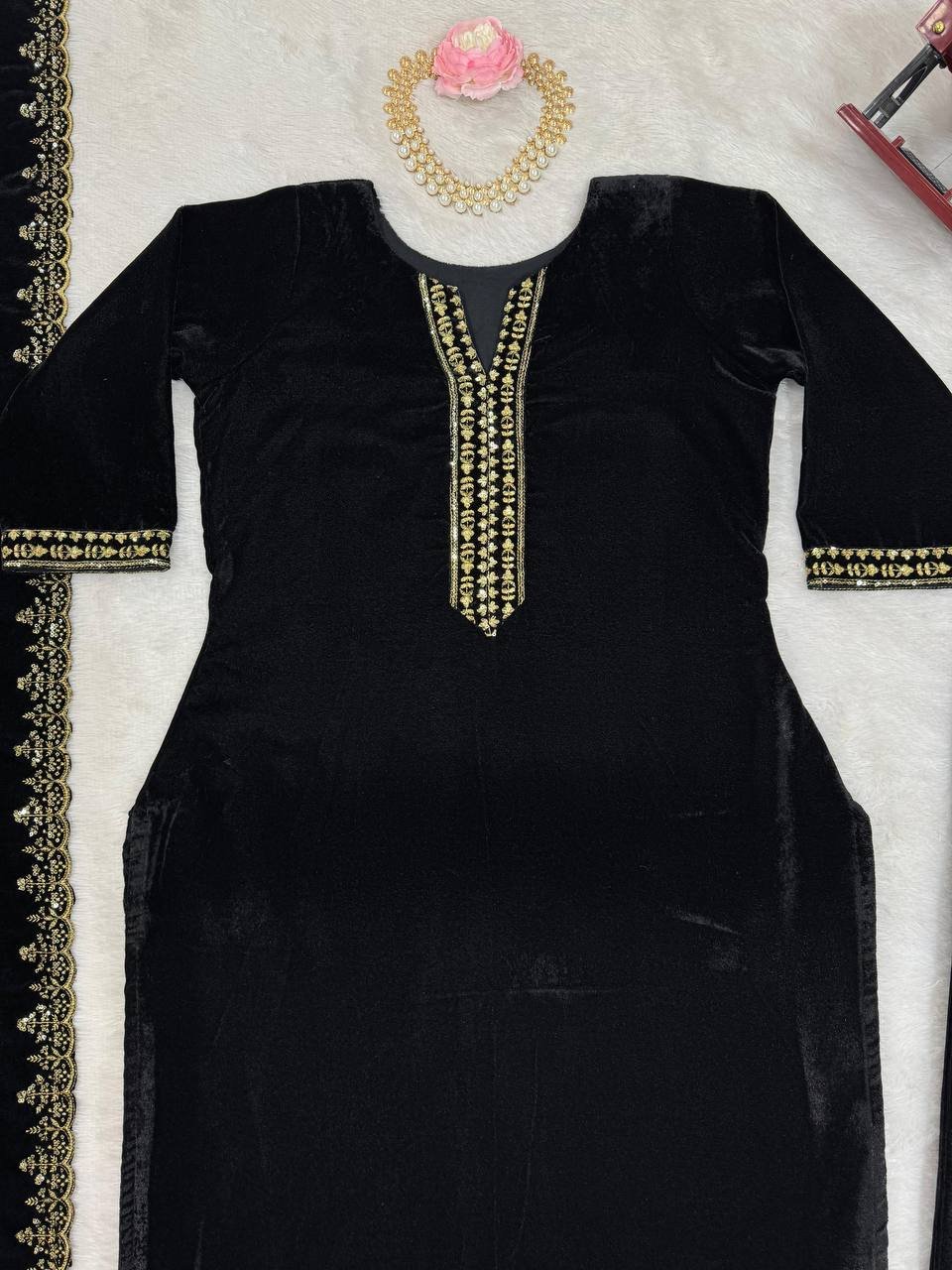 Viscose Velvet Designer Suit with Sequins Work & Lace Dupatta – Premium 5000 Series | BRAD LEEZO