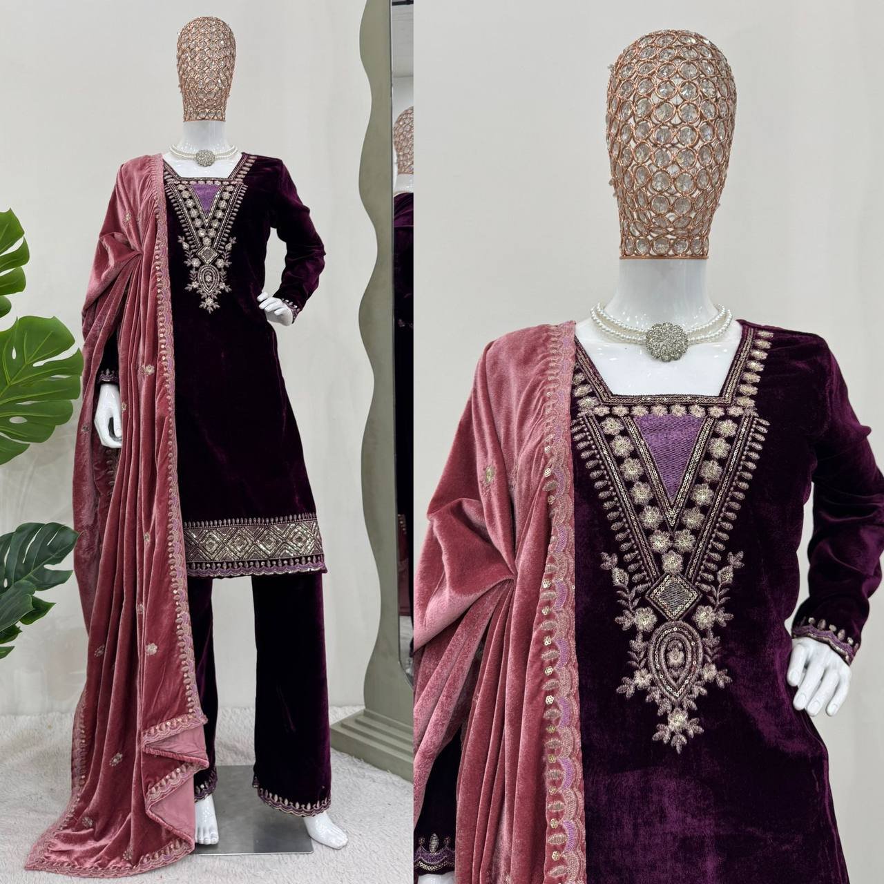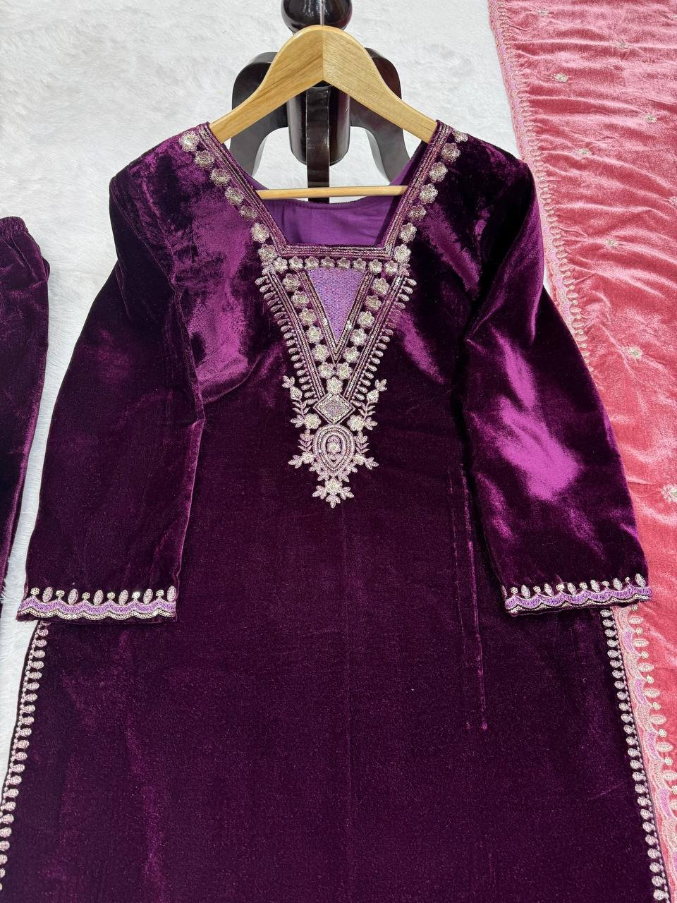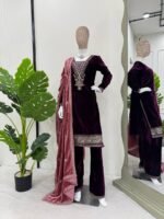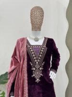 A premium ethnic set crafted for elegance and comfort. The rich velvet texture combined with detailed sequins work makes it ideal for special occasions and festive celebrations.