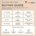 - Type: Instant, Capacity: 10,15,25,35 Liters Avaiable, Wattage: 2000 Watts, Pressure: 8 Bars, BEE Rating: 5 Star Rated Energy Efficient Geyser, Inner Tank Material: Stainless Steel (SS) Tank with special Anti-Rust coating – 2X Corrosion Resistance; Outer Body Material: Metal (CRCA).