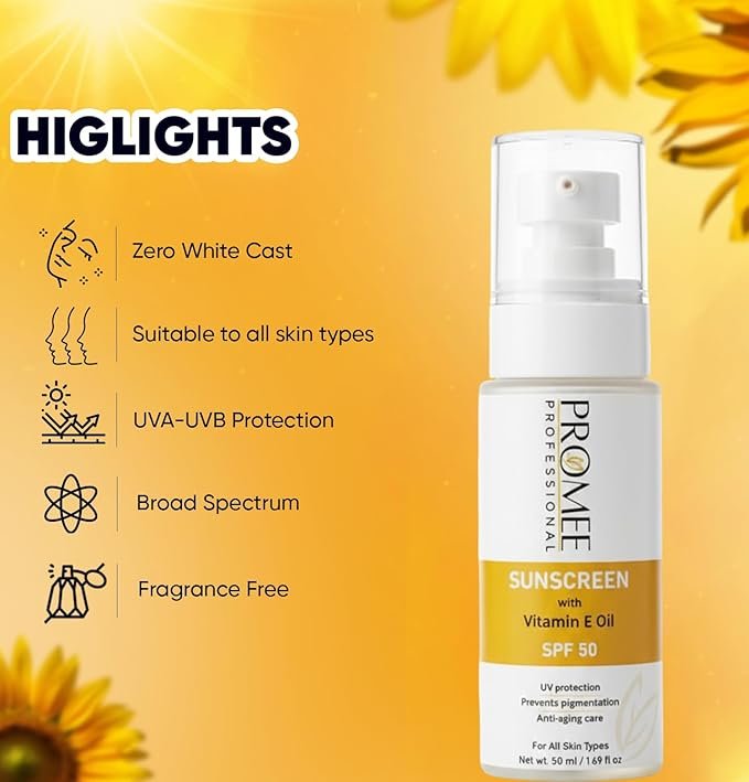 Vitamin E Enriched | Broad Spectrum UVA/UVB | Anti-Tan, Anti-Aging & Pigmentation Control | Non-Greasy | 50 ml | Promee