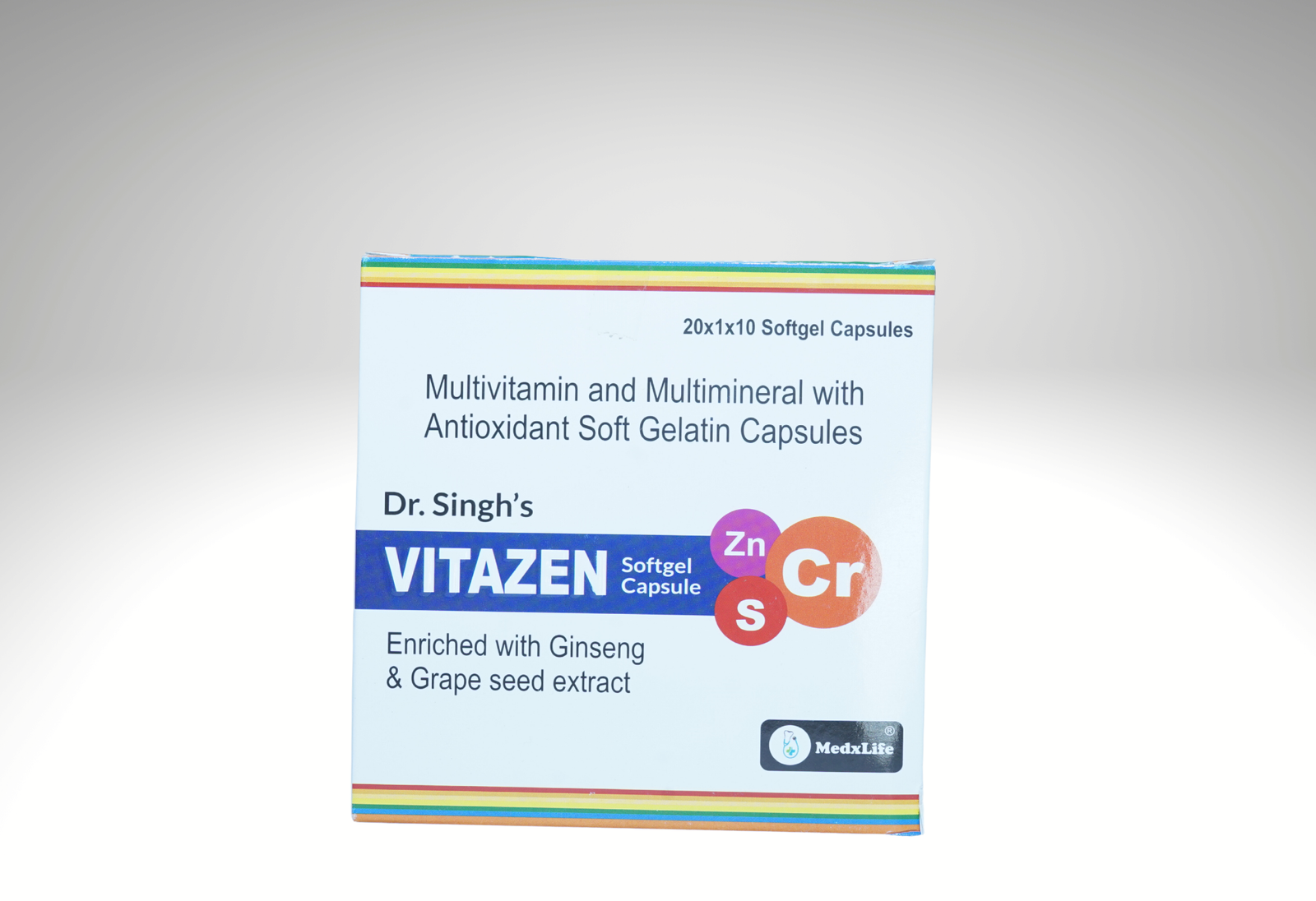 Dr. Singh’s Vitazen Capsule is a premium daily health supplement formulated with a powerful blend of Ginseng, Grape Seed Extract, Vitamin B Complex, Vitamins D & E, Vitamin C, Calcium, Zinc, Magnesium, Selenium, Chromium, Manganese, and other essential minerals and antioxidants.