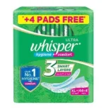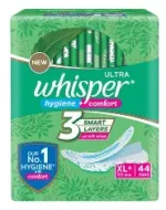 Whisper Ultra Green Pads XL+ 44 Pads are designed for heavy flow, offering long-lasting protection with odor control, quick absorption, and a dry, comfortable top layer.