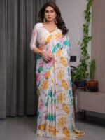 Be the first to review “White Satin Georgette Lotus Floral Printed Saree with Attached Blouse – Elegant Watercolor Designer Saree for Festive & Graceful Occasions | Crown Fashion” Cancel reply