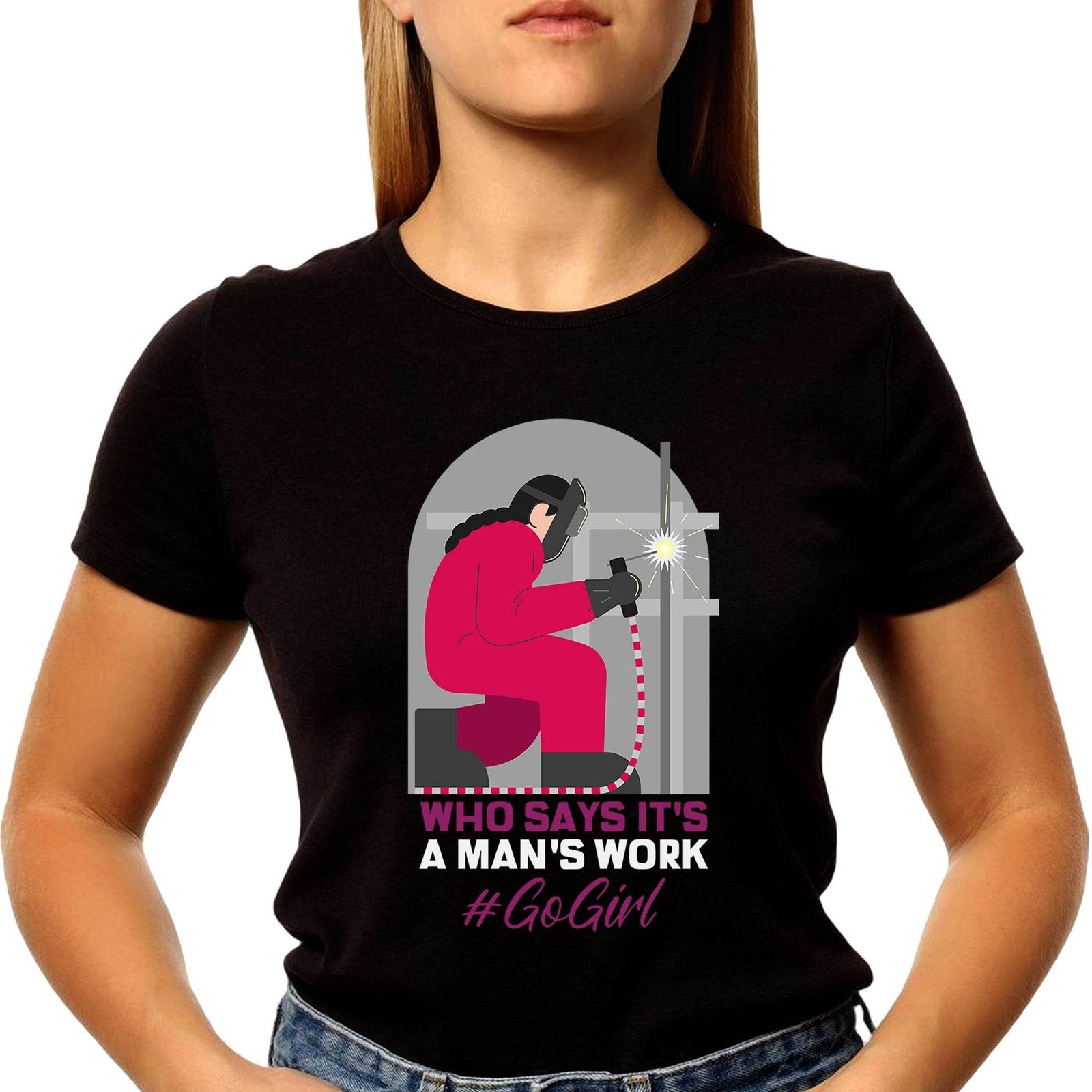 • Design: “Who Says It’s a Man’s Work #GoGirl” front print