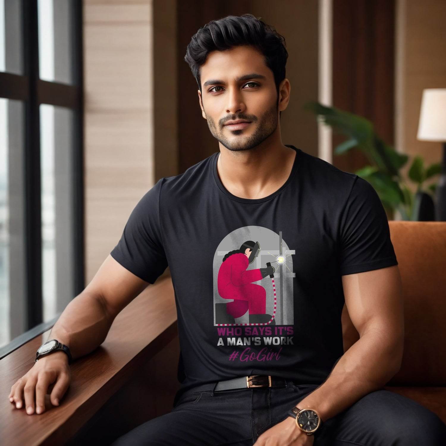 Who Says It’s A Man’s Work – Unisex Round Neck Regular Fit 100% Combed Cotton Half Sleeve T-Shirt | MOJILO