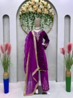 This designer velvet suit set is crafted for women who love warm yet elegant ethnic fashion. The rich texture of velvet combined with detailed embroidery and organza dupatta creates a perfect blend of comfort and luxury.