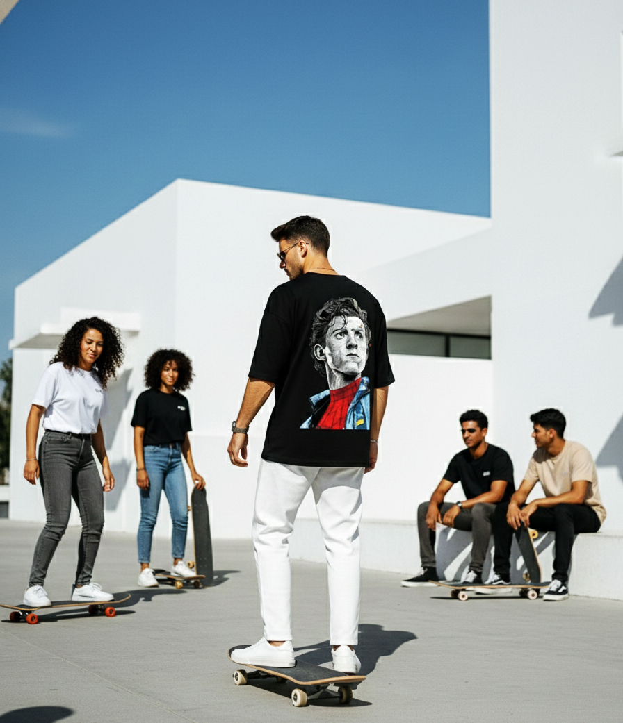 The deep black shade enhances the graphic impact, while the premium print quality ensures durability with no cracking or fading even after multiple washes. Whether you’re heading out with friends, skating, traveling, or styling for everyday casual wear, this T-shirt keeps your look sharp and effortless.