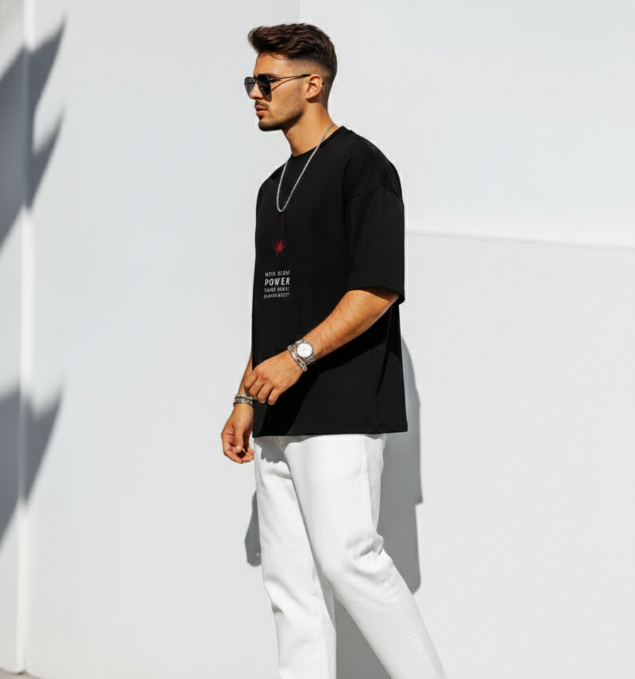Upgrade your street style with this Premium Black Oversized Graphic T-Shirt, designed for men who love bold fashion and modern urban vibes. The powerful back graphic print gives this tee a standout look, making it perfect for those who prefer confidence over noise.
