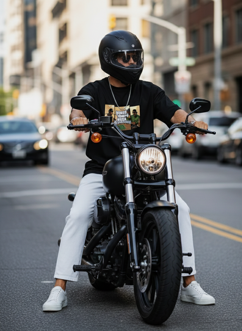 WÖLFIN Grand Theft Auto Inspired Black Oversized Streetwear T-Shirt | Urban Biker Edition