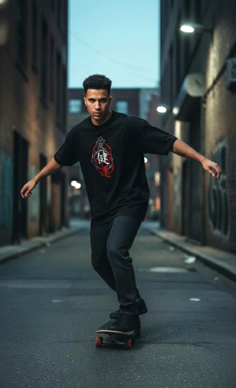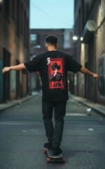 Agar aapko dark anime aesthetics, Japanese typography aur bold back prints pasand hain, toh yeh T-shirt aapke wardrobe ke liye must-have hai.