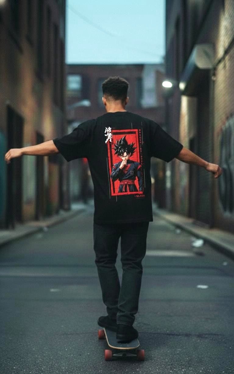 Is premium black oversized anime back print T-shirt ko specially un logon ke liye design kiya gaya hai jo streetwear, anime culture aur bold fashion pasand karte hain. T-shirt ke back side par powerful red & black Japanese-style anime warrior graphic diya gaya hai, jo dark, mysterious aur fearless attitude ko perfectly represent karta hai.