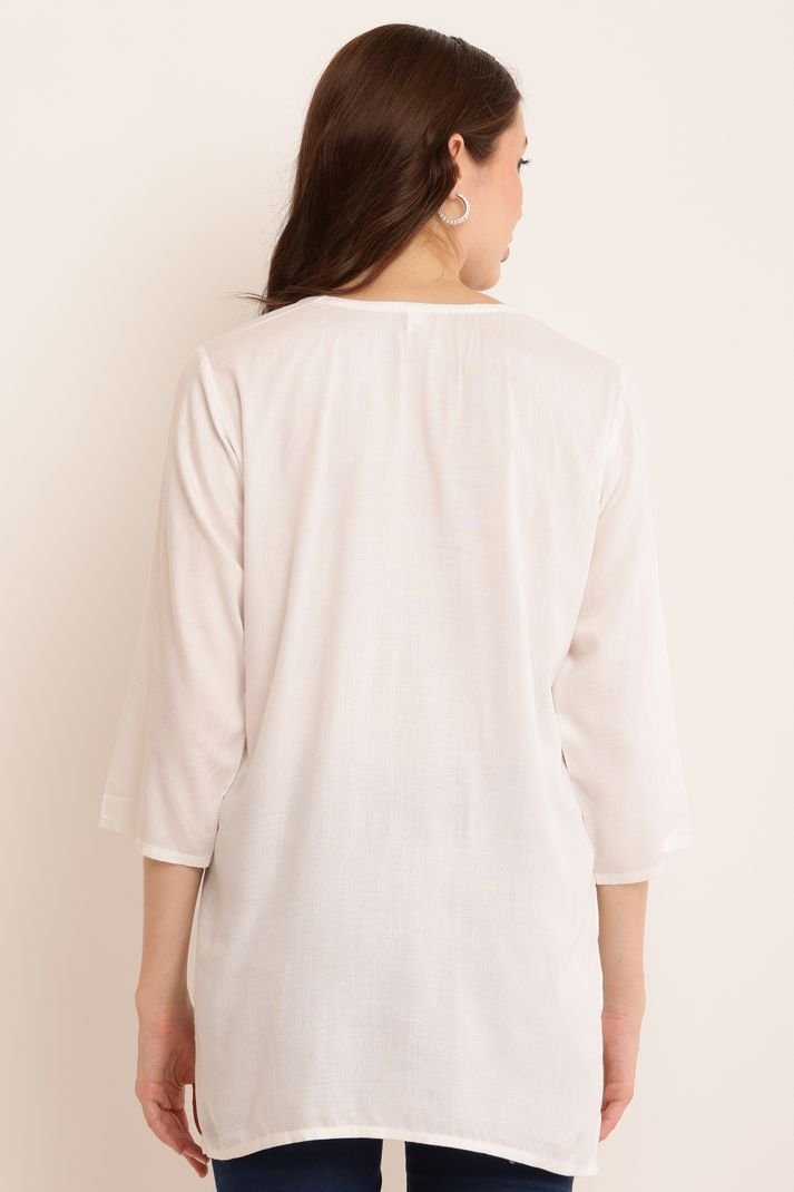 Women Embroidered Cotton Rayon A-line Kurta (White) | AREEBA FASHION | TA TECHNOLOGIE