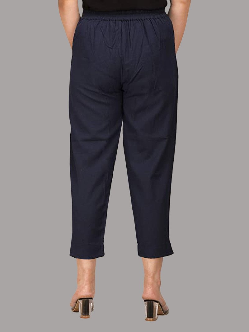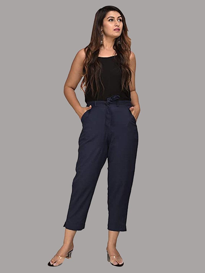 Women Regular Fit Dark Blue Viscose Rayon Trousers | AREEBA FASHION | TA TECHNOLOGIE