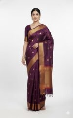 Be the first to review “Women’s Banarasi Silk Saree – Rich Wine Purple with All Over Zari Buti Work, Gold Zari Border & Pallu for Wedding & Festive Use | DIMANI INNOVATIVE SOLUTIONS” Cancel reply