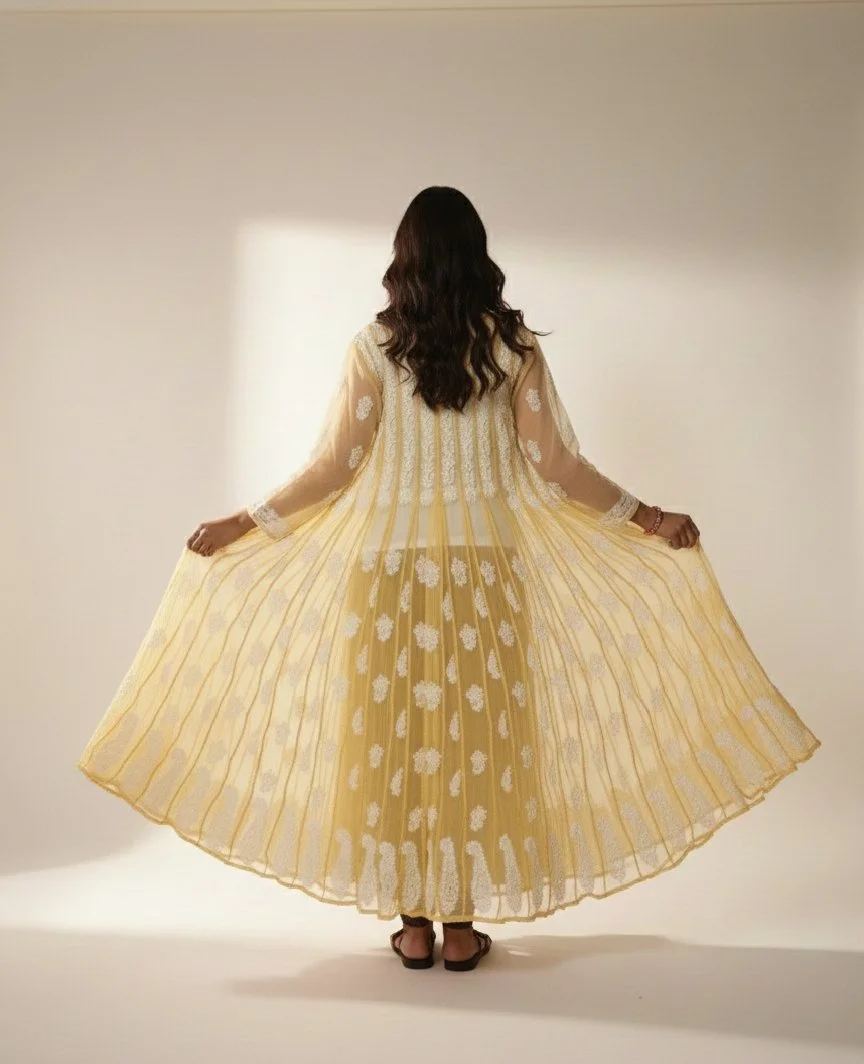 Women’s Chikankari Yogdaar Anarkali Pastel Yellow | ChikanAdda