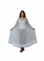 Women’s Chikankari 56 kali Anarkali Steel Grey | Riwaayat Chikan