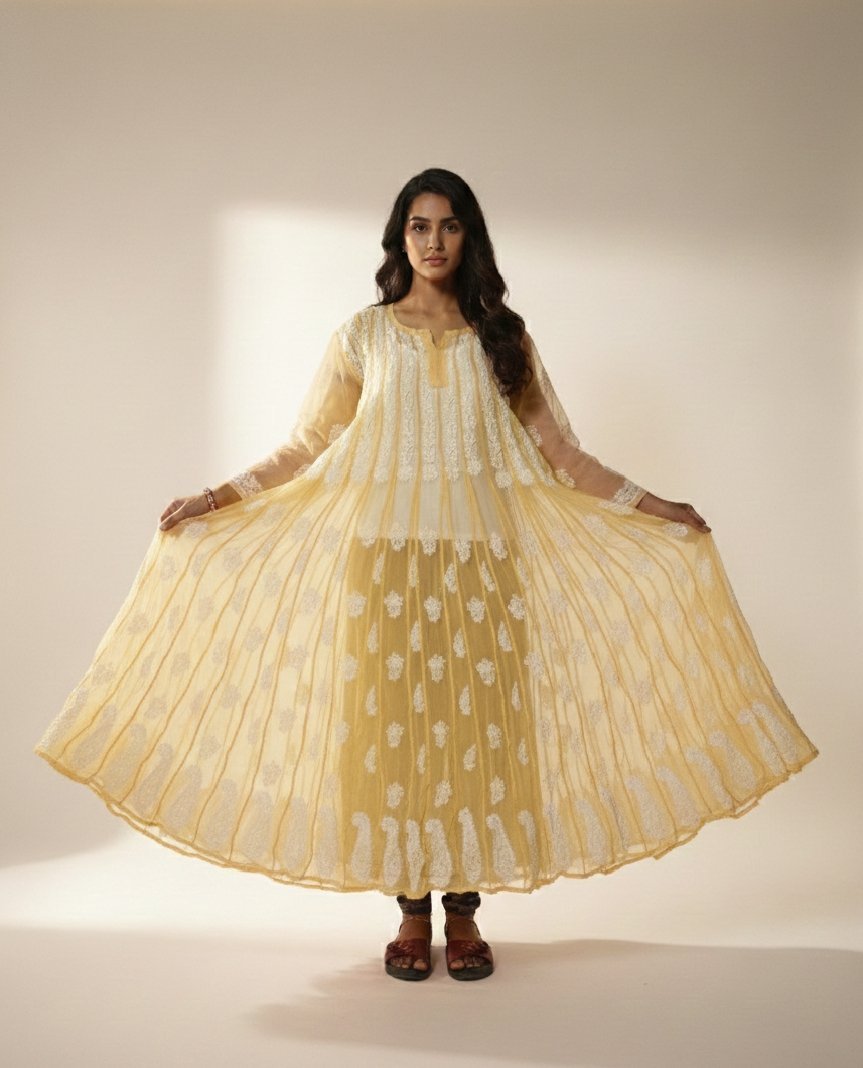 Women’s Chikankari 56 kali Anarkali Warm Honey | Asli Chikankari