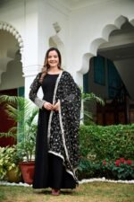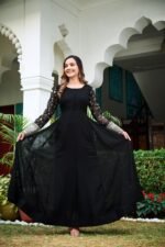 This Anarkali gown is ideal for women who love minimal yet statement ethnic wear. The rich black color enhances its premium appeal, while the lightweight fabric ensures comfort and effortless styling.