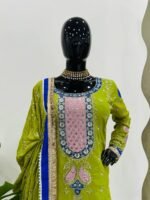 Women’s Viscose Velvet Thread & Sequence Work Kurta Pant Set with Net Dupatta | BRAD LEEZO