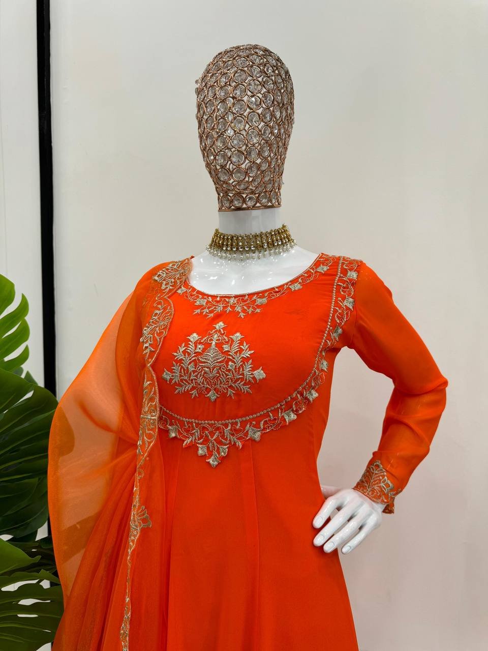 Be the first to review “Women’s Faux Georgette Thread Work Kurta Pant Set with Organza Cutwork Dupatta | BRAD LEEZO” Cancel reply