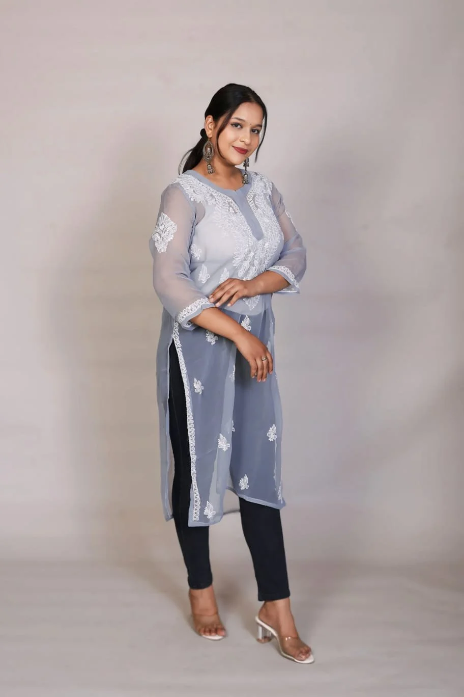 This stylish embroidered kurti combines traditional design with modern comfort. The elegant white floral embroidery adds a luxurious ethnic touch, while the breathable fabric ensures comfort throughout the day. Perfect for daily wear, office wear, festive events, or casual gatherings, this kurti is a versatile addition to any wardrobe.
