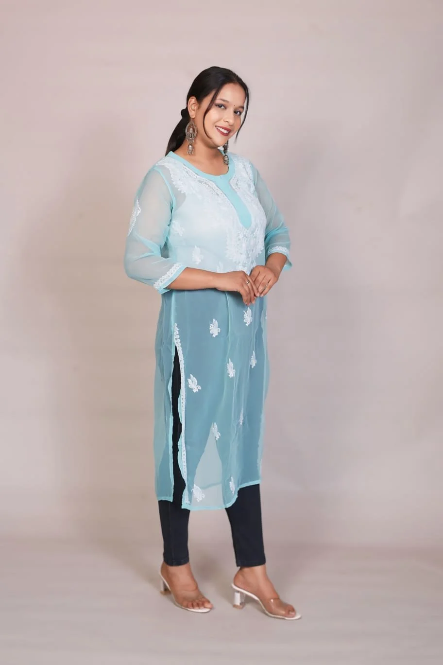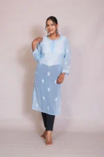 Be the first to review “Women’s Gala booty Chikankari kurti Powder Blue | ChikanAdda” Cancel reply