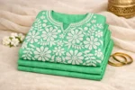 Be the first to review “Women’s Mint Green Floral Embroidered Sleeveless Cotton Chickenkari | Chikan Adda”