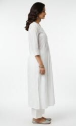 This pristine white kurti exudes timeless elegance with its delicate Chikankari-inspired threadwork and soft, pleated silhouette. The breathable fabric and intricate white-on-white embroidery create a sophisticated, monochromatic look that is both airy and graceful. Ideal for summer outings, prayer ceremonies, or elegant daytime events, this kurti is a classic staple that brings a sense of serenity and luxury to your ethnic collection.