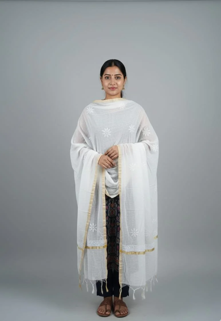 Women’s Pure Chanderi Chikankari Dupatta | Sirohi fashion