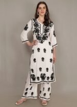 Women’s Pure Modal White & Black Hand Embroidered Lucknow Chikankari Kurta Plazzo set | Asli Chikankari