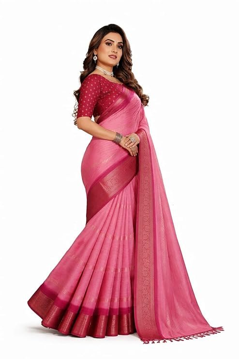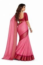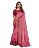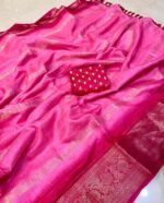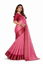 Women’s Pure Mushroom Silk Saree – Rose Pink with All Over Zari Lines & Elegant Kanchi Border | Saree With Matching Blouse | Wedding & Festive Use | DIMANI INNOVATIVE SOLUTIONS