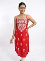 Be the first to review “Women’s Red Embroidered Straight Kurti | Asli Chikankari”