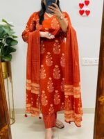 Be the first to review “Women’s Terracotta Red Floral Printed Kurta Set with Chevron Patterned Dupatta | Komal Collection” Cancel reply