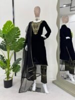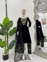 Women’s Viscose Velvet Thread & Sequence Work Kurta Pant Set with Net Dupatta | BRAD LEEZO