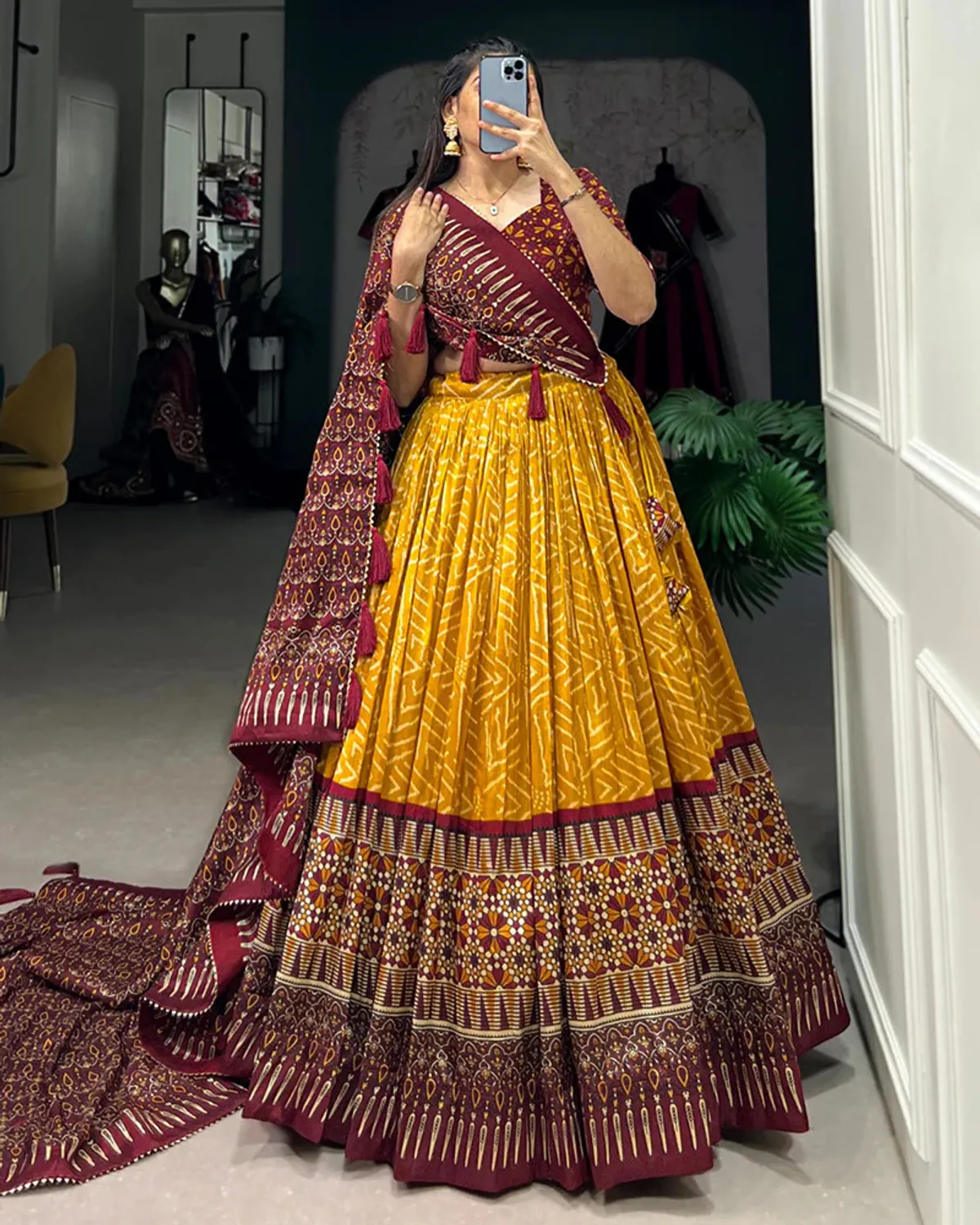 Yellow-Color-Tussar-Silk-Foil-Print-Lehenga-Choli-For-Women | Lehenga and choli