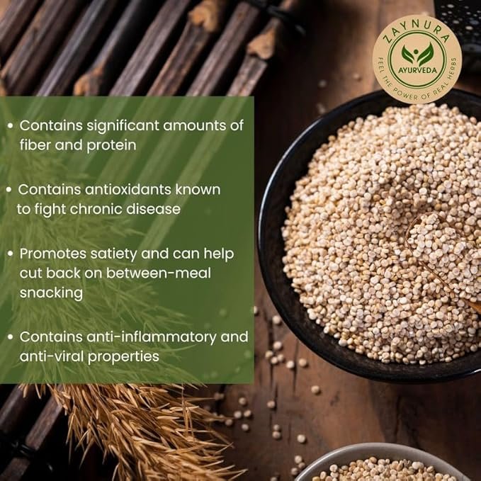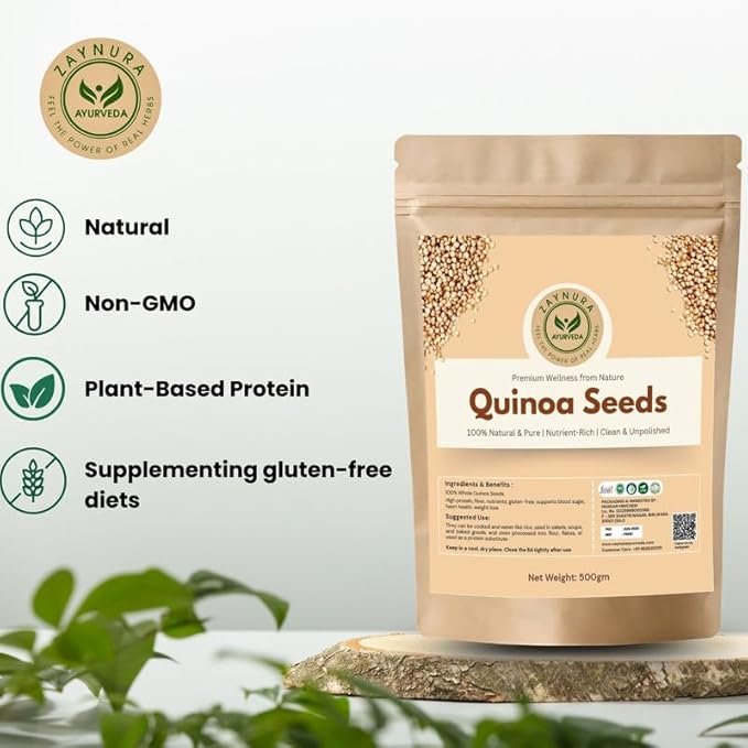 Brand ZAYNURA – “feel the power of real herbs” Diet Type Vegetarian Number of Items 1 Net Quantity 900.0 Grams Item Package Quantity - Premium Quality Superfood – 100% natural, hand-picked quinoa seeds packed with protein, fiber, and essential minerals.
