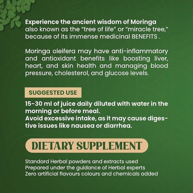 - 100% Pure Moringa Goodness – Made from fresh, high-quality Moringa leaves, this juice delivers natural plant-based nutrition with no artificial colors, flavors, or additives.