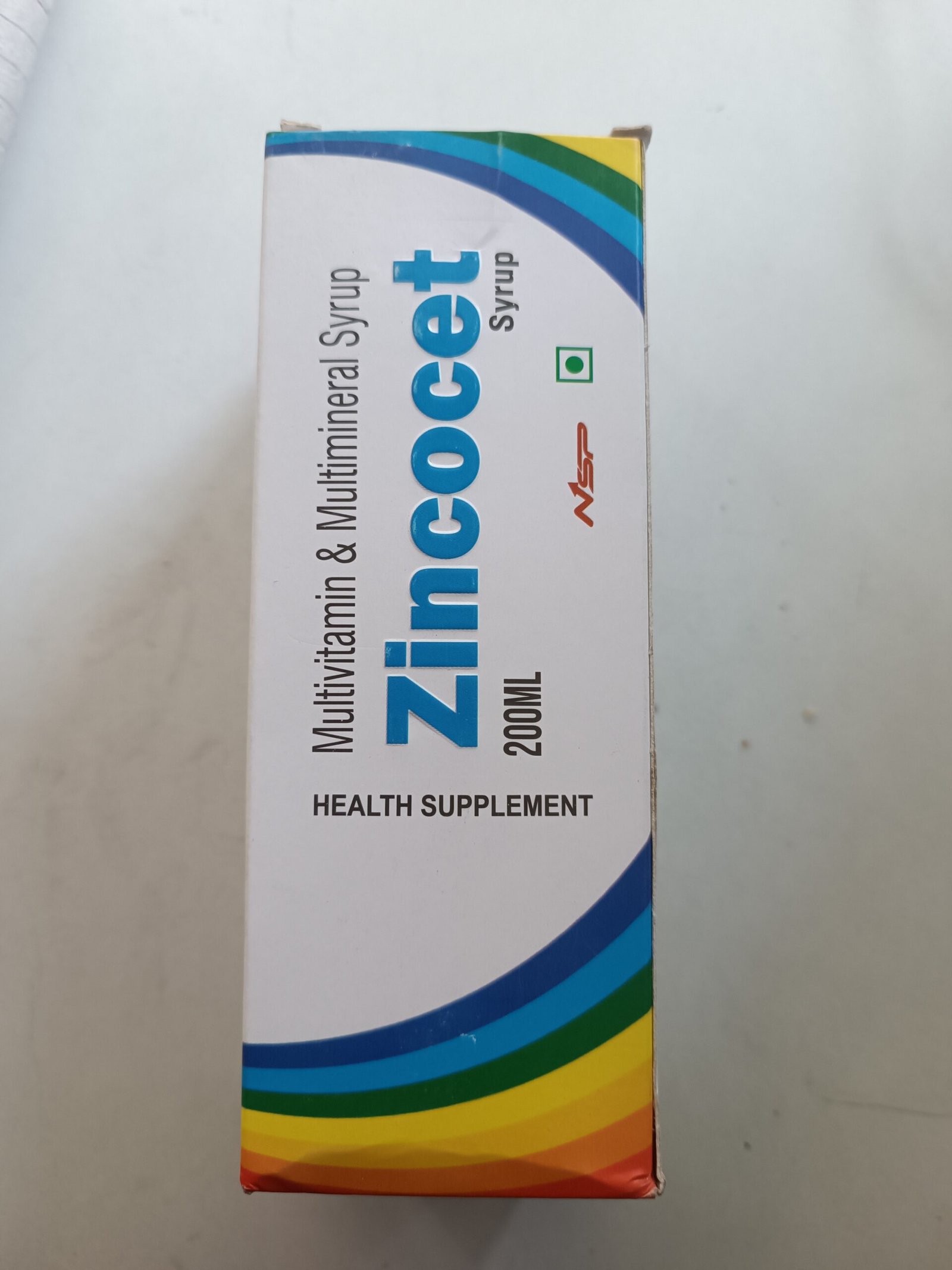 Zincocet Syrup 200ml is a multivitamin and multimineral syrup containing zinc, vitamins, and amino acids, typically used as a dietary supplement to support overall health and immunity.